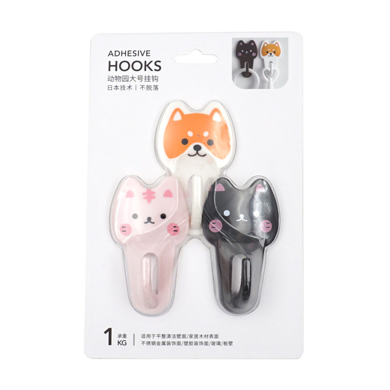 Miniso Famous Product Animal Series Pvc Soft Glue Hook Cat And Dog Cute Stickers Free Punching Hook